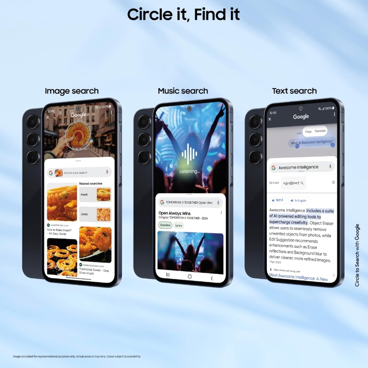 • AI Enhancements – Circle to search – Music, Image or text. Enhance your photos with Camera enhanced by AI and Intelligent visual editing – Object eraser. Image remaster. AI edit suggestions.